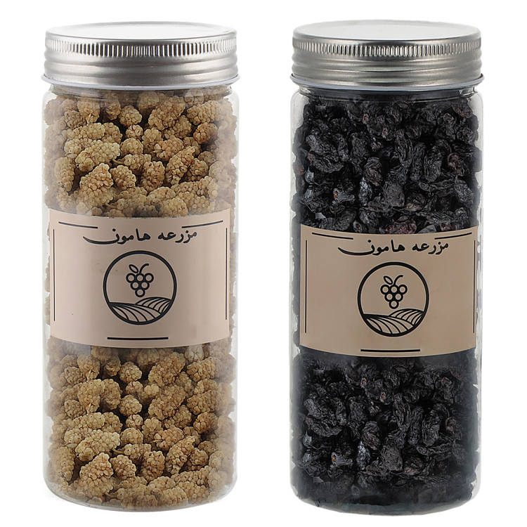 450 گرم توت خشک سال 1401 و 600 گرم مویز شاهانی هسته دار اعلا مزرعه ارگانیک هامون در بسته بندی های جداگانه. این نوع مویز از انگور سیاه شاهانی و محصول باغ دیم انگور هامون بوده که فقط با اب باران رشد کرده. بدون سم و کود شیمیایی است و به روش سنتی و آفتابی خشک شده.. در تولید و فرایند خشک شدن ان از تیزاب استفاده نشده و 100% ارگانیک میباشد توت خشک ارسالی محصول منطقه ولیان و از بهترین کیفیت و رنگ روشن برخوردار میباشد